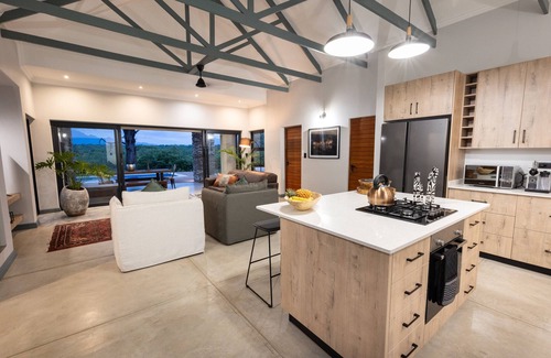 Exuding an aura of timeless elegance and nestled in the heart of nature's bounty, Villa Thornybush invites discerning guests to indulge in the pinnacle of refined living. Imbued with an open-plan design that maximizes its breathtaking location, this newly crafted haven presents a harmonious blend of luxury and tranquility. Gazing out from the villa's vantage point, the Klein Drakensberg Mountains unfold in all their splendor, framed by the Thornybush trees that grace the surroundings.