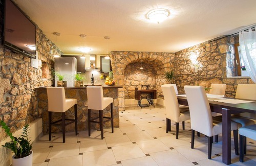 This beautiful, fully renovated house (Villa Vita Krk) is built of stone. It is located in a quiet little village called Polje. The house has three separate apartments, which are connected to each other only from the outside. The village Polje is ideal for a quiet and romantic holiday and is a good starting point for excursions on the island of Krk and the mainland. Visit the islands of Cres and Losinj, the cities, Krk, Malinska or Baška and the mountain region of Gorski Kotar in the mainland. There are near beautiful pebble beaches and several options for activities on the island, especially in Baska, in the town of Krk. You can visit Vrbnik and enjoy the taste of local wine "Žlahtina". The Učka Nature Park is situated nearby, from where you habes. Magnificent views of the Kvarner Bay, the islands of Krk and Cres and the cities of Rijeka, Opatija and Kastav