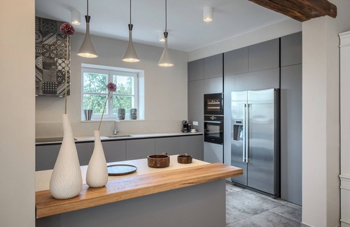 The detached villa built in 2019 and is furnished in a modern, luxury and typical country style. The property is located on the outskirts. Also due to the view over the sea from the property and its quiet and sunny location the domicile is popular. Available for your exclusive use: sunbathing lawn, parasol, sun lounger, garden shower, barbecue facilities, terrace and garden furniture.LocationVišnjan. The villa is located on a 870 sqm enclosed garden plot with meadow, flowers, shrubs and trees, bordered by a fence and a hedce. The landlord does not live in the house or on the property. With a beautiful sea view, our villa is an optimal place for relaxation in the beautiful Istrian countryside. The new, bright, modern villa with 2 spacious terraces and a beautiful garden with pool can accommodate 8 people. The villa was built in the Mediterranean style typical of the country. The location of Visnjan in the hinterland of the romantic cities of Poreč and Novigrad is of course one of the main advantages of this location. The cities of Poreč and Novigrad are 10-15 minutes by car from Visnjan. Visnjan is an idyllic place in Istria, which is not overrun by tourism. Mainly the place is characterized by typical buildings. Access is via a side road (asphalted). Parking (for 2 cars) is available in a carport and on the street in front of the house. Specialair conditioning, underfloor heating.Facilities: baby cot, high chair, internet access (WLAN), iron and washing machine. TV reception takes place via satellite. TV reception is possible in many languages. Use of the private broadcaster Netflix is included. PoolAll pools are available for exclusive use. Outdoor pool (usable all year long, 4 m x 8 m, depth 1,6 m). Dogsallowed. Free of charge. DistancesShopping 150 m, restaurant 200 m, town center 150 m. railway station, indoor swimming pool, sauna, discotheque, cinema, doctor each 12 km in Porec. airport in Pula 55 km. Visnjan: bank 150 m and pharmacy 200 m. In summer: Adriatic Sea 12 km in Porec (beach 12 km in Porec featuring gravel, stones, rocks and bathing plateaus). boat launch in Novigrad 15 km. tennis, mini golf, horse riding, fishing, diving, water sports, boat rental each 12 km in Porec. golf in Savudria 35 km. Rijeka airport 110 km, Trieste airport 100 km, DivisionVilla, 2 floors, 5 rooms (including 4 bedrooms), 206 sqm, in total 9 beds (including 1 cot). RoomThe entrance to your villa is located on the ground floor, is covered, at ground level and wheelchair accessible and leads directly into the vestibule with wardrobe and sitting area.Ground floor: Bedroom (16 sqm) with 1 double bed and access to the terrace (covered, garden furniture, 6 sunbeds, parasol). Bedroom (19 sqm) with 1 double bed, 1 additional bed (only suitable for children under the year of 2) and access to the terrace (covered, garden furniture, 6 sunbeds, parasol). Kitchen (14 sqm) with TV, electric stove (induction stove, ceramic hob, 4 plates), oven, extractor hood, dishwasher, fridge (icebox), microwave, coffee machine, toaster, electric kettle, washing machine and access to the terrace. Anteroom (8 sqm). Hallway (9 sqm). Storeroom (11 sqm). Bathroom (4 sqm) with shower, 1 washbasin, WC and window. Bathroom (5 sqm) with shower, 1 washbasin, WC, hairdryer and window. Separate toilet (4 sqm) with 1 washbasin, WC and window. 1st floor: Bedroom (15 sqm) with 1 double bed. Bedroom (20 sqm) with 1 double bed and access to the loggia (12 sqm, covered, garden furniture, 1 table, 2 chairs, 1 sun lounger). Bathroom (6 sqm) with shower, 2 washbasins, WC, bidet, hairdryer and window. Bathroom (5 sqm) with shower, 1 washbasin, WC and window. Living room (19 sqm) with sitting area, TV, fireplace, stereo system, dining area (8 seats) and access to the terrace (37 sqm, covered, garden furniture, 1 table, 8 chairs, 6 sunbeds, parasol). Terms of lease and pricesIncluded in the priceOutdoor pool, babycot, internet access, baby cot, air conditioning, electricity, water, Bed linen (weekly change), hand towels (weekly change), Wireless Internet access. Side costs-Additionally(Payable when booking)/final cleaning obligatory 563 € per object per stay. local tax.Deposit:EUR 1000,-/object.