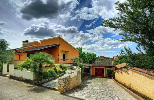 The standig individually villa, built in 1990 and renovated in 2007 is rustic and in the typical country style furnished. The property is located in a residential area, on the outskirts. The domicile is also popular because of the view over a panorama from the property and the quiet and sunny location. For exclusive use are available: sunbathing area, sun lounger, children's playground, swing, garden shower, grill possibility, terrace and garden furniture. large playground, volleyball, football, fitness room, wine cellar, bicycle parking spaceLocationMuntić. The villa is located on a 3500 sqm, closed garden plot with meadow, flowers, bushes and trees, limited by a fence and a hedce. The landlord does not live in the house or on the property. Only families and groups over 30 years desired. The access goes via a side road. Parking lot (for 4 cars) on the property. Specialair conditioner. Facilities: internet access (WLAN) and washing machine. TV reception takes place via satellite. PoolOutdoor pool (4 m x 8 m, depth 1,40 m, for exclusive use). The pool facility can be used from mid of May to the end of September. WellnessSauna and Whirlpool. Dogsnot allowed. DistancesShopping opportunity 500 m, restaurant 3 km, town center 5 km. railway station in Pula 10 km. Main road 2 km.In summer: Bathing possibility 10 km in Pula (beach 10 km in Pula with meadow, gravel, stones, rocks and bathing plateaus). DivisionVilla, 2 floors, 6 rooms (including 5 bed rooms), 220 sqm, in total 10 beds. RoomThe entrance in your villa is located on the ground floor. Kitchen with dining area (10 seats), gas stove, electric stove, oven, extractor hood, dishwasher, fridge (25 l, icebox), coffee machine, toaster and Cutlery, dishes, etc. available. Living room with fireplace, DVD, CD, safe and access to the balcony access to the terrace (covered, garden furniture, parasol). 3 bedrooms each with 2 single beds. Bedroom with 1 double bed. Bedroom with 1 double bed. Bathroom with bathtub, 1 sink and WC. Bathroom with shower, 2 sinks and WC. Bathroom with shower, 1 sink and WC. Terms of lease and pricesIncluded in the priceOutdoor pool, sauna, internet access, dish towels (26.08.23-01.01.26), internet access (26.08.23-01.01.26), air conditioning (26.08.23-01.01.26), electricity (26.08.23-01.01.26), gas (26.08.23-01.01.26), water (26.08.23-01.01.26), final cleaning (26.08.23-01.01.26), bed linen (26.08.23-01.01.26), hand towels (26.08.23-01.01.26), bathing towels (26.08.23-01.01.26). Side costs-Costs on the spot:/Obligatory:registration fee 5 € per person per stay (26.08.23-01.01.26).Deposit:EUR 300,-/object.