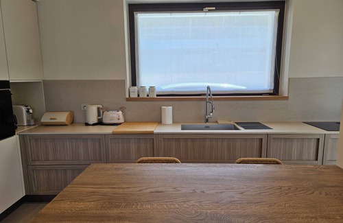 The full equipped kitchen with induction hob, combined oven and microwave, spacious fridge and freezer, wine cellar for your favorite bottles, will let you cook delicious meal.