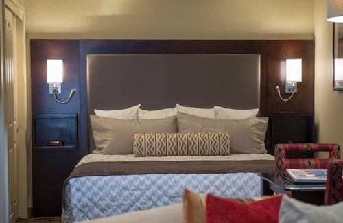 Our most intimate accommodation, the Monterey Villa boasts 700 sq. ft. of living space, with high, vaulted ceilings, a second floor loft, and a private balcony to enjoy coffee in the morning and a glorious Arizona sunset in the evening. This villa sleeps four with a king bed on the main level and a queen bed in the loft. For those occasions that you’re not heading into Scottsdale or enjoying a meal poolside at The Grille, the well-equipped kitchen includes a glass stovetop and microwave/convection oven, dishwasher, and refrigerator/freezer. The villa also features a washer/dryer for convenience – and fireplace to sit by at the end of the day. The master bath includes dual sinks and a whirlpool tub.