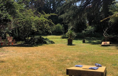 Unwind and enjoy all the benefits of Portland from a comfortable distance. Book this storybook Tudor on three acres next to Johnson Creek, with all the features of a country retreat PLUS easy access to inner Southeast Portland's shops and restaurants. This vintage charmer is spacious and comfortable—with lots of beautiful, private outdoor space. Finish your screenplay, clear your head, rest, relax, cook, read, wander the grounds, or just stay inside and watch the Criterion Channel. It's all possible.