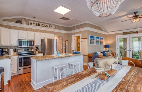 Immerse yourself in the relaxing, welcoming ambiance of stunning Tybee Island, Georgia, with a stay at Latitude Adjustment! Featuring a main house that sleeps six and a carriage house that sleeps four, this charming vacation home offers unparalleled privacy and close proximity to the best events and attractions across The Jewel of the Coastal Empire region! Latitude Adjustment is a definite standout among Tybee vacation rentals, ideally situated just a short walk from the beach, Memorial Park, shops and several great restaurants including Sea Wolf, Sundae Cafe, Salt Island Fish and Beer, and Agave Bar and Grill.