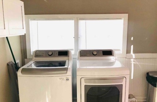 Shared laundry room equipped with detergent & dryer sheets for your use.