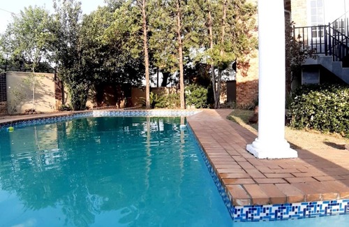 Welcome to Waterfall City Guest Lodge, Johannesburg. Exclusive self-catering apartments - a home away from home. A large property nestled in the heart of Sandton, in close proximity to the Mall of Africa, Sandton City, Kyalami Racetrack and Monte Casino. Convenient travel options to the O.R Tambo international airport with Gautrain bus station nearby. Step into a tranquil manicured garden and walkways, beautiful nature, fruit trees and bird life. Braai/barbeque area in the tranquil garden. Virtually unaffected by power outages, with gas geysers and backup water supply. This is a queen garden unit, with artistic modern deco, and a comfortable queen bed – tastefully decorated to suit every guest’s needs. Comfortable foam mattress. A separate unit, complete with its own bedroom, bathroom and kitchen, tea and coffee stations, breakfast and dining area, and work area with smart tv. The unit accommodates up to 2 adults. Includes ample cupboard space, and new kitchen appliances. The unit comes with its own fridge, stove, oven, microwave and kettle. Safe and secure with 24-hour security response, cctv, electric fencing and alarms. Easy access to secure, free covered parking. Situated in the heart of exclusive shopping spots and restaurants, close to gyms, and day spas. Close proximity to golf courses and major corporate office parks. Access to all major highways and against traffic in all directions. Free Wi-Fi and peaceful home office set up. Any additional amenities can be requested on arrival.