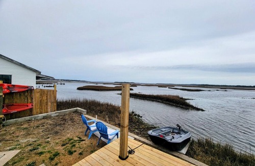 This cozy cottage is perfect for the adventurer at heart. Waterfront with 2 kayaks and a small boat with oars (trolling motor and battery for rent). 3 miles to the Beach. We catch flounder, drum, crabs, etc from the backyard. Use the kayak or boat to explore a sand bar or just float around the Marsh. The location is amazing! Steps from the water. Our home is on a busy road so there will be some road noise, we proved sound machines if needed.