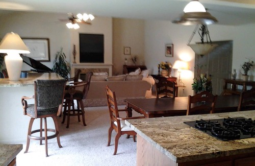 This two story, three bedroom spacious home has everything our guests desire. Each bedroom has a queen size bed,and a private full bathroom with a bathtub. The master suite has a separate shower, walk in closet, and a large jacuzzi. A private balcony overlooks the freshwater bay. The home is beautifully furnished, with three new smart tv's, free wifi, and bbq on a spacious, furnished waterfront deck.Central air conditioning, gas stove, side by side frig, microwave, and ample parking on a corner lot, with a circular driveway. An immaculate Steinway seven foot grand piano awaits your expression. A fully stocked kitchen, and a very large grocery store is nearby. No dogs, extra guests, or parties of any kind are allowed.