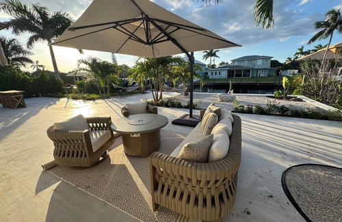 OUTDOOR LIVING AT ITS BEST-LOUNGING AREA WITH FIRE TABLE, GRILL & SMOKER-DINE WATERSIDE