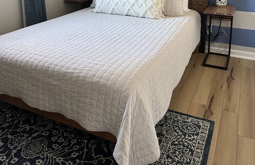 We have two bedrooms and one loft that has been converted into a kids area fitted with a bunk bed. Downstairs you will find two living room areas, one with a smart TV. There is also a fully equipped kitchen with a stainless steel oven, fridge/freezer and dishwasher. Next to the kitchen, we have provided a large work desk and monitor that you can connect to your laptop and work remote. There is also a dining area with a table that seats 6 and coffee nook with a brand new Keuirg coffee maker (A Ninja Coffee maker is available as well for drip coffee, if that is your preference). Down the hall, you will find a full bathroom (with a shower/tub combo), mudroom equipped with a brand new washer and dryer, and the spare bedroom with a queen sized bed and smart TV. In the mudroom, you can also find an assortment of sand toys, a bocce ball set and corn hole set you are welcome to use during your stay.