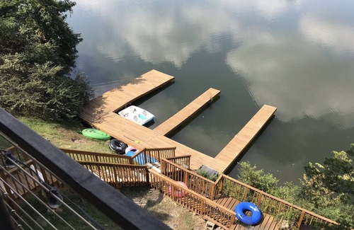 Experience Hot springs with breathtaking Lake Hamilton views from either of 2 balconies! 2.5 bedroom 2 bath +2 half baths. Boat dock just steps down from the house. Fishing. Newer construction so new stainless appliances, new furnishings, 1 king bed, 1 queen, and a twin area for kids! (Blow up beds available). Sleeps 6-8. Washer/dryer on each floor (2 levels), walk in closets, bamboo wood floors, jacuzzi tub/shower, dishwasher, all kitchen supply's, coffee pot, keurig, outdoor table for eating or coffee at sunset, deck by the water with fire pit, and more. Charcoal grill provided for outdoor cooking!! There are 2 entrances to the home on different levels. This gives privacy for friends or family. There is a spiral staircase that connects the 2 floors inside as shown in pictures. Super easy for 2 families to have privacy on separate floors. It’s Minutes from Oaklawn racing and shopping and same for the historic downtown area. A must see! 2 couches in living area can also serve as sleeping for an additional 2 more.
