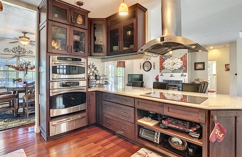 This beautiful three story detached house with 3900 sq feet, overlooks a natural tidal lagoon in Kings Bay Crystal River, Florida .Definitely family friendly with large screened in pool ( not heated), huge lot with outdoor fire pit and room for games like corn hole on the lawn. Expect to have coffee in rocking chairs with a direct view of Kings Bay and spot the manatees while you do it. With ample patio decks you will spend a lot of down time just taking in the view and peace. Have dinner on the top deck, the middle deck over looking the pool or ground floor. This house is beautifully appointed and the kitchen is any cooks dream.