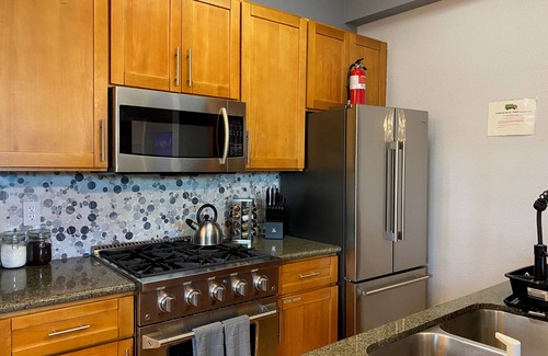 - Full Kitchen with professional gas stove, dishwasher, and everything for you to make a gourmet meal