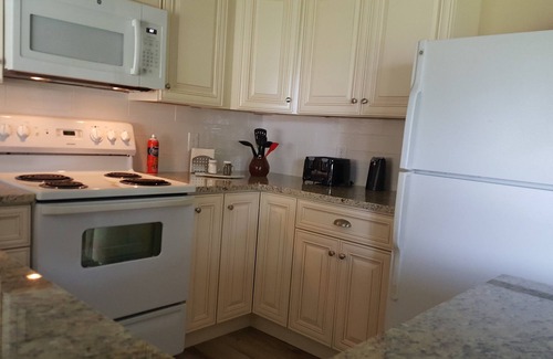 Upon arrival you will enter the foyer to an open living room design. The living room is furnished with a couch, love seat with one accent chairs for encouraged relaxation. You can enjoy watching movies on a 55" smart TV with blue-ray player, Netflix or stream your favorite movies via our free Wi-Fi. The dining room is open to the spacious kitchen area. The kitchen is fully stocked with coffee, creamer, sugar, spices/herbs, cookware, glassware, silverware and dinnerware and coffee maker, everything you may need is provided. Just grab your groceries and you're set to prepare your favorite home cooked meals. There is a laundry facility with new washer/dryer within the unit and we supply basic laundering supplies.