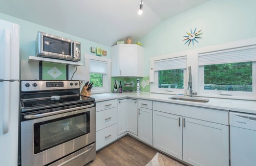 This adorable cottage is tucked within a quiet neighborhood near Lake Tomahawk, the Black Mtn. Golf Course, and the restaurants and shops in the beloved town of Black Mountain. Whether you're enjoying your morning coffee on the outside patio alongside the trees, getting cozy by the fire pit during those cool evenings, or spending a night in watching the Smart TV with internet streaming (Hulu Live TV) by the electric fireplace in the living room, you will feel completely at ease in this inviting mountain nook. This home is in a premier location, situated near many hiking trails and other spots to take in the gorgeous views of the mountains and nearby lake. Not to mention, you're only 20 short minutes away from downtown Asheville and the Biltmore Estate! With this home, you'll be just outside the hustle and bustle of the city while still benefiting from all the city has to offer.