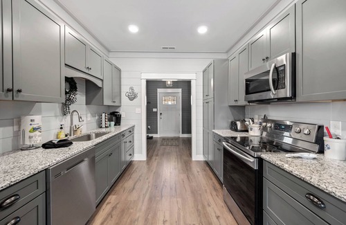 Our farmhouse chalet has all the comforts of home and is ready for you to relax and enjoy your mountain getaway. We have 2 newly remodeled king bedrooms on the first floor and another newly remodeled king bedroom on the lower level. We also have a bunk bedroom on the lower level that has a twin over full bed that sleeps 3 kids comfortably! We have a twin day bed in our game room perfect for a teenager hangout room! We have wifi and cable with all smart TVs available for your enjoyment. The lower level has a game room with an actual Ober ski lift to lounge in while playing pool and an inviting hot tub on the deck outside! The game room is equipped with a pool table, a retro barrel arcade game, and a multicade system with a variety of games.