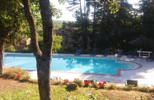 Large private garden with a private pool 9 x 20 m ( h 1,50 m ) with sun loungers and parasols open from the first week of May to the end of September. The al fresco dining table in the court yard sits 22