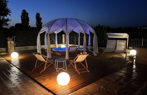 Best-rates for the Castelnuovo villa starts from $441 per night with includes Air Conditioner, Designated Smoking Area, Hot Tub, TV, Balcony/Terrace, Wellness Facilities, Barbecue/Outdoor Cooking, Child Friendly, Kitchen, Laundry, Parking, Fireplace/Heating, Internet, Pet Friendly, Bedding/Linens, Spa with all other facilities. Casai.uk matches every traveler with their perfect accommodation, whether you are traveling with a group, friends, family, or pets.