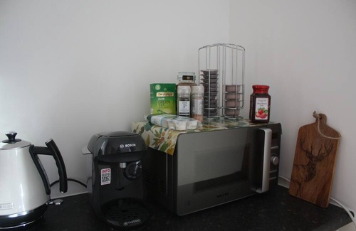 It has one double bedroom, a shower room, and compact living space with sofa, dining table and kitchenette, parking and your own grass area with table and chairs to enjoy the bird song and peaceful surroundings. (Please note there is no oven, but there is a microwave, fridge, toaster and coffee machine). The sink is located outside the door in the car port.