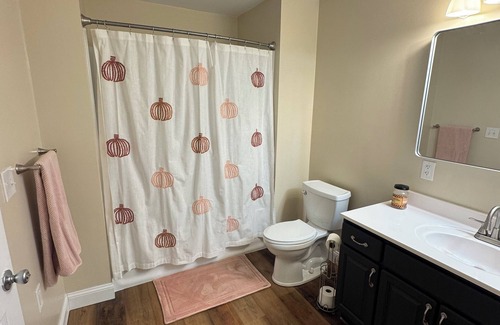 For fun and relaxation, enjoy our pool table, disc golf, horseshoes, and cornhole, or just relax in the hammock. In the evenings, gather around the firepit to roast marshmallows and enjoy the peaceful sounds of nature.