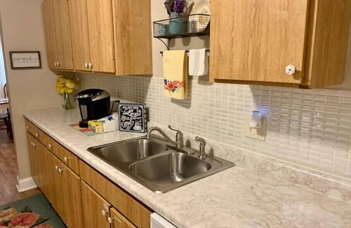 No cleaning fees! We have over 275 five star reviews. Charming, completely remodeled 4 bedroom, 2 bath home in the heart of the historic Delano district. Stay where the action is--walking distance to restaurants, breweries, Riverfront Stadium, the Wichita Ice Center; and only a short drive to Friends University, InTrust Arena and Old Town. The home features a lovely screened-in porch with patio furniture, fenced back yard and private parking. Inside are cozy accommodations including a sectional sofa, 50" TV with Roku & fully stocked kitchen. The master suite is on the main floor and features a king size bed with luxury linens as well as a queen size bed. The recently remodeled master bath includes a bathtub/shower and also features a full size washer and dryer (laundry soap provided). The second bathroom is also located on the main floor. Upstairs are three additional bedrooms with queen size beds.